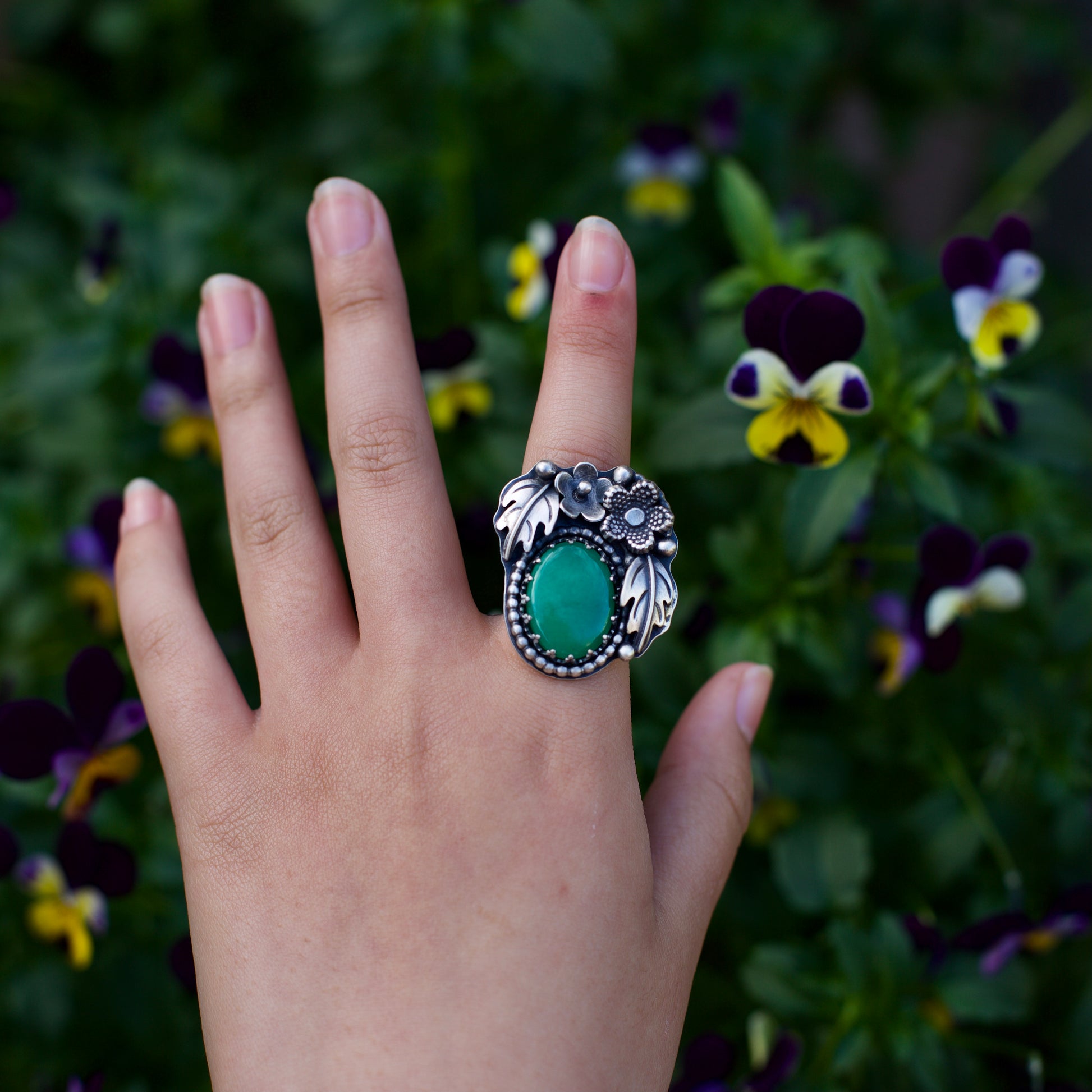 Chrysoprase Hawthorn Sterling Silver Ring - Charlotte