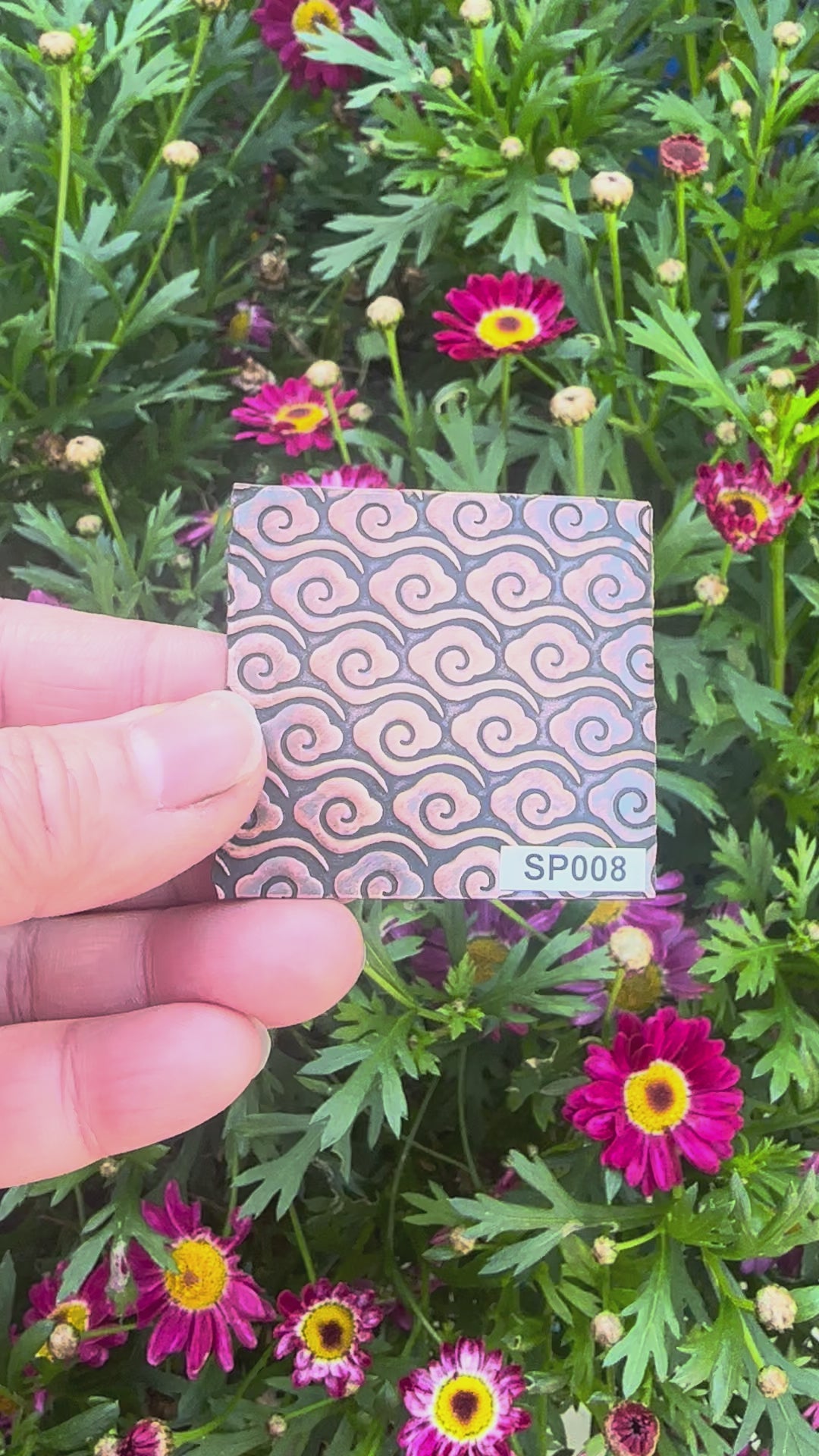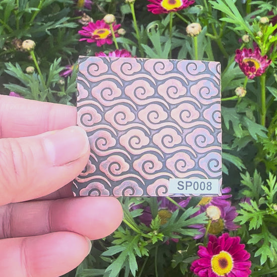 Each plate made from cold rolled mild steel and hand etched pattern. Can be used with a rolling mill, hydraulic press or hand hammering(a protective lead sheet need to be used for hammering by hand, and a urethane piece will works better with the hydraulic press).