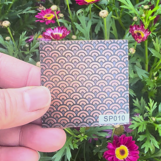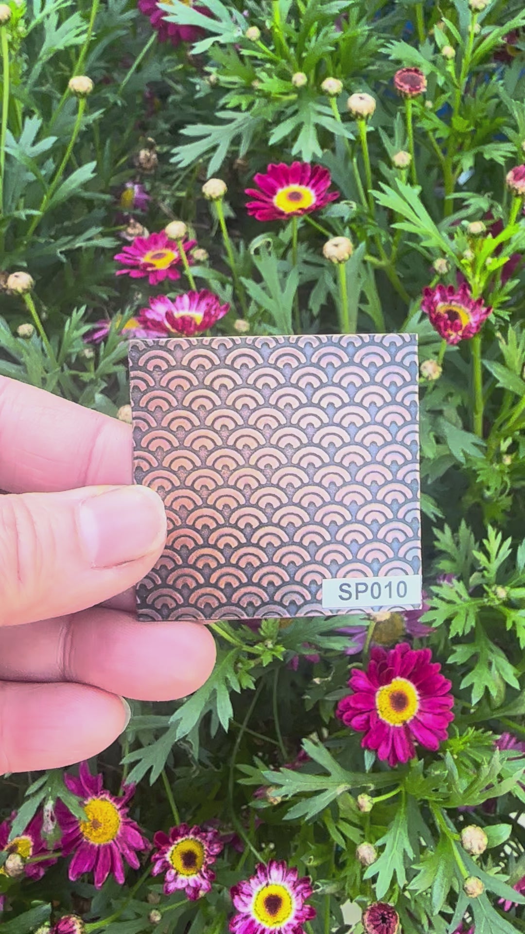 Each plate made from cold rolled mild steel and hand etched pattern. Can be used with a rolling mill, hydraulic press or hand hammering(a protective lead sheet need to be used for hammering by hand, and a urethane piece will works better with the hydraulic press).