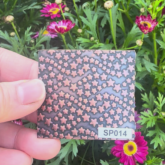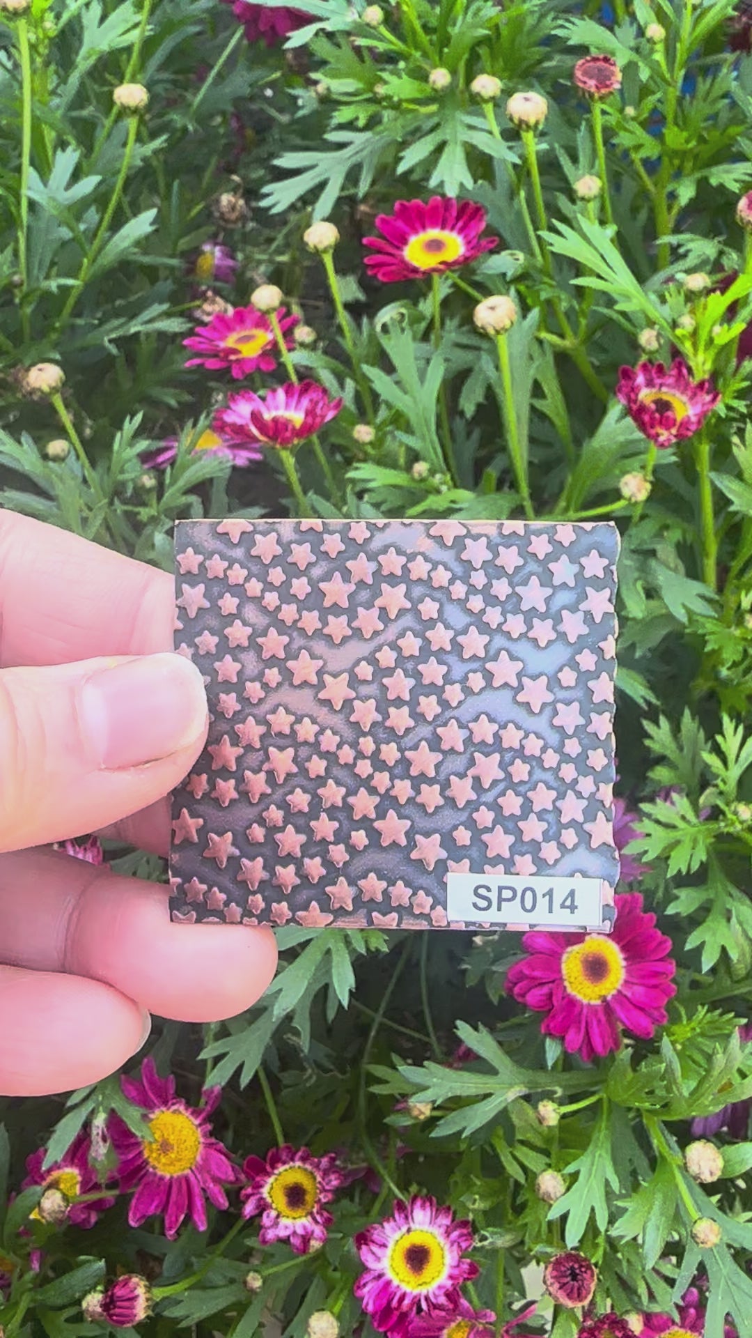 Each plate made from cold rolled mild steel and hand etched pattern. Can be used with a rolling mill, hydraulic press or hand hammering(a protective lead sheet need to be used for hammering by hand, and a urethane piece will works better with the hydraulic press).