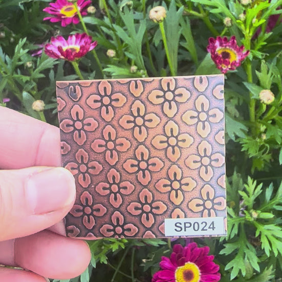 Each plate made from cold rolled mild steel and hand etched pattern. Can be used with a rolling mill, hydraulic press or hand hammering(a protective lead sheet need to be used for hammering by hand, and a urethane piece will works better with the hydraulic press).