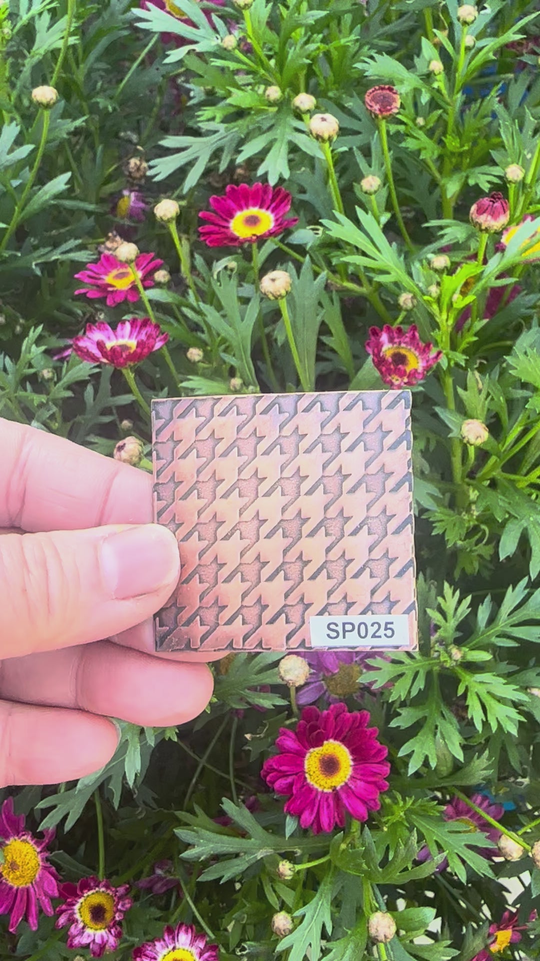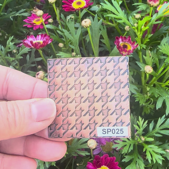 Each plate made from cold rolled mild steel and hand etched pattern. Can be used with a rolling mill, hydraulic press or hand hammering(a protective lead sheet need to be used for hammering by hand, and a urethane piece will works better with the hydraulic press).
