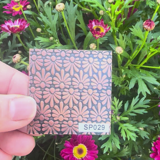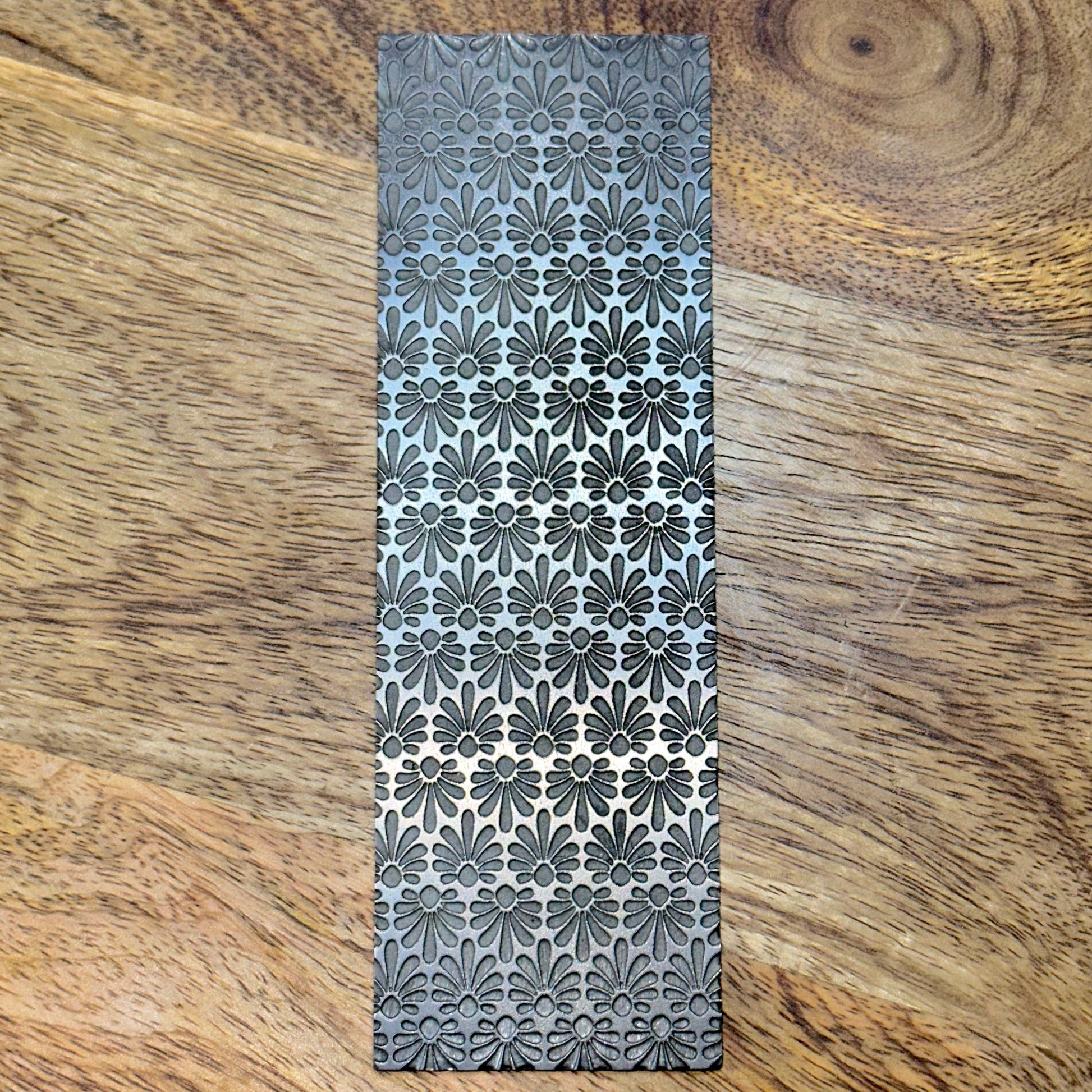 Each plate made from cold rolled mild steel and hand etched pattern. Can be used with a rolling mill, hydraulic press or hand hammering(a protective lead sheet need to be used for hammering by hand, and a urethane piece will works better with the hydraulic press).